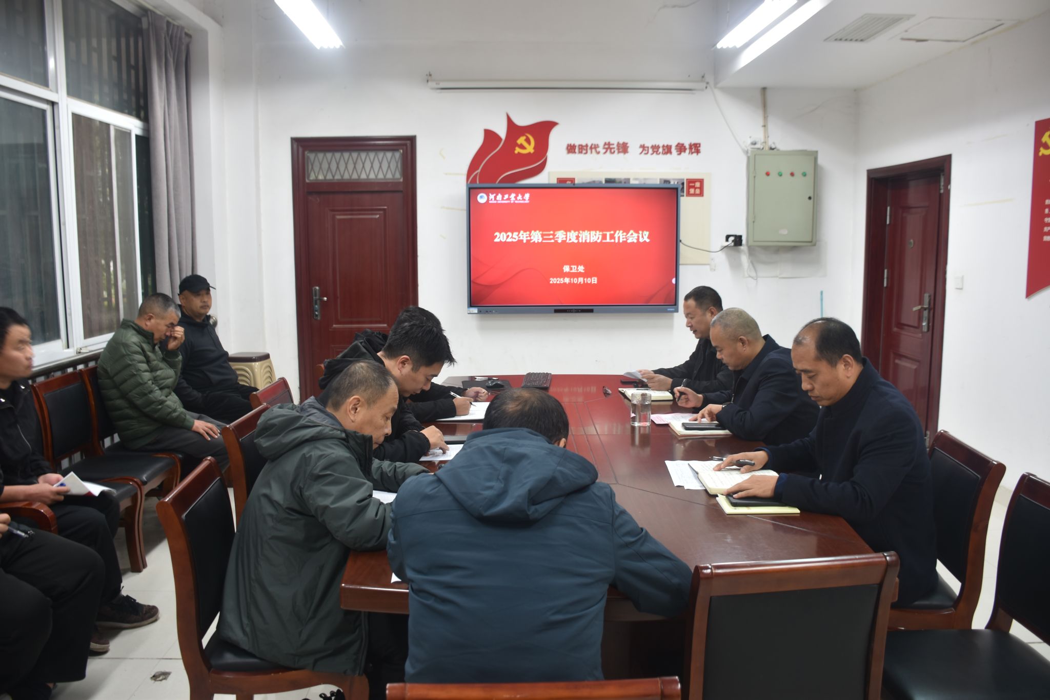 为全面总结第三季度校园消防工作成效,统筹部署第四季度消防重点任务。10 月 10 日,消防科在行政楼B117-2会议室召开第三季度消防工作会议。保卫处处长孙明亮出席并讲话,消防科全体人员、维保公司人员参会,会议由副处长李芳炎主持。