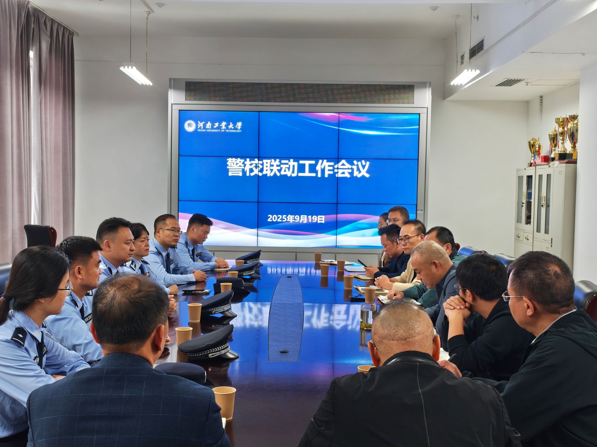 为进一步巩固和属地公安机关联防联控联治工作机制,汇聚“平安工大”共建合力,9月19日,学校召开新学期警校联动工作会议。枫杨派出所所长郎龙飞和5位民警同志出席会议,校长办公室、党委统战部、党委学工部、实验室管理处、保卫处(党委政治保卫部)、团委、后勤服务中心、校办产业管理中心、国际教育学院等相关部门负责同志参加会议。保卫处处长孙明亮主持会议。