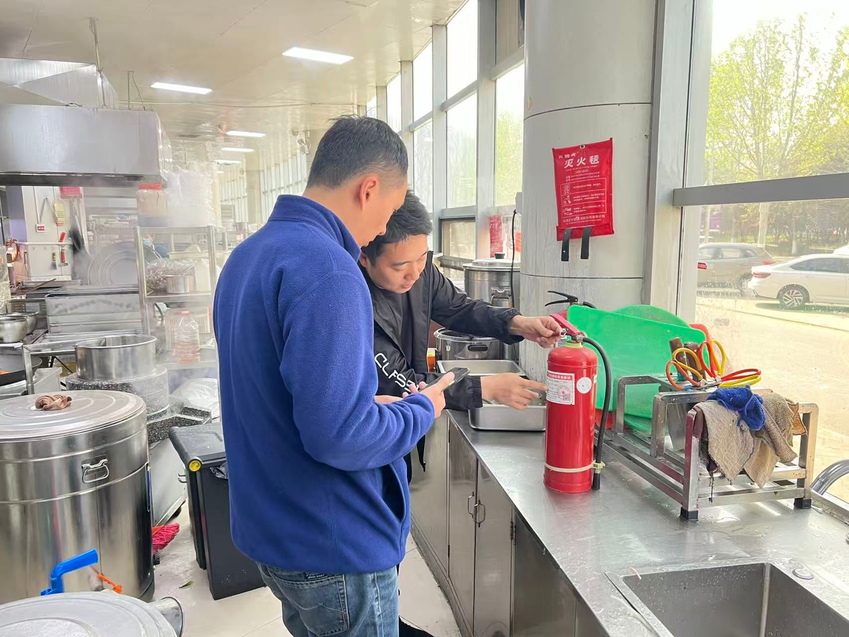 在学生宿舍,保卫处副处长李芳炎检查了宿舍管理人员对应急预案及应急处置流程的掌握情况。检查人员重点查看疏散通道是否畅通、现场测试了应急照明、疏散指示标志是否完好有效,排查宿舍是否存在私拉乱接电线、违规使用大功率电器等行为,在食堂区域,仔细核查消防安全管理制度、火灾应急处置预案和日常防火巡查记录,详细了解工作人员消防培训与消防安全知识掌握情况,重点询问了燃气报警系统、后厨灭火系统运行状态,强调用火用气操作规范。